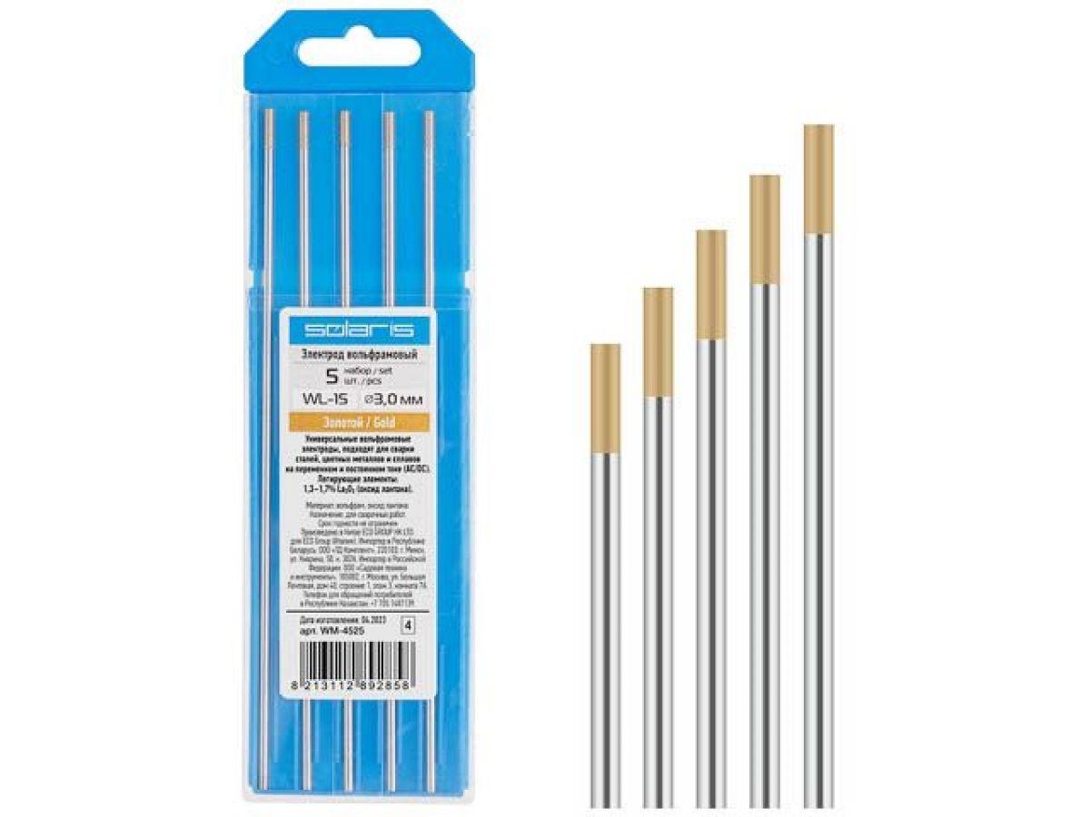 Электрод вольфрамовый золотой WL-15, Ф 3,0 мм (набор 5 шт) SOLARIS (WM-4525)